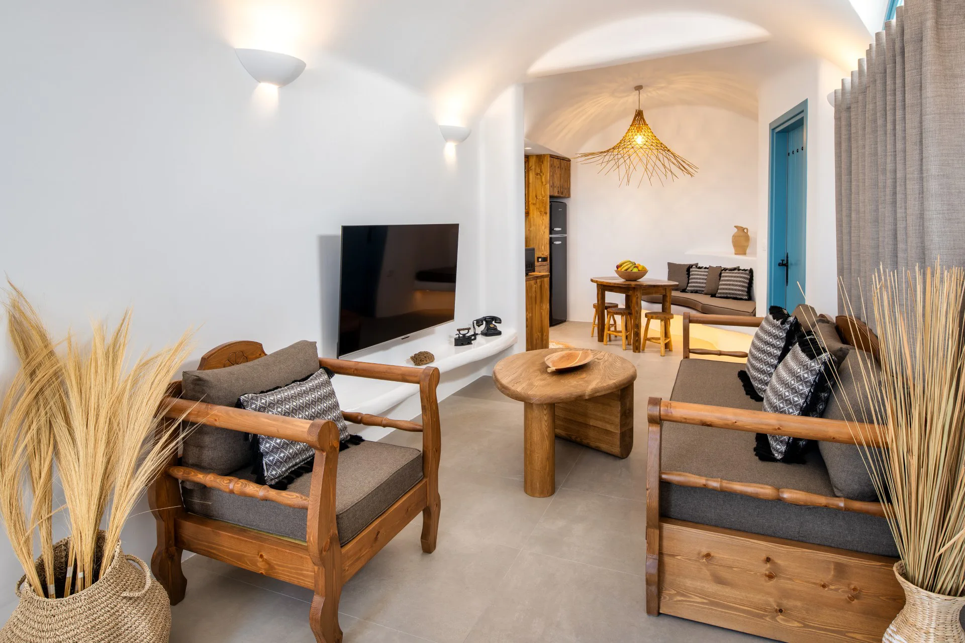Calm Collection Santorini presents the Ikia Santorini Villa Since 1980, a property made with care and respect to the authentic living in Santorini. This private residence in Santorini offers unique accommodation for 6 guests and becomes the ideal destination for families and groups who seek comfort, modern amenities and relaxed moments close to the capital of the island, Fira. The two bedrooms and the spacious living room offer an indoors sanctuary just for you, where at the fully equipped kitchen you can enjoy preparing your holiday meals. Moreover, the Ikia Santorini Villa Since 1980 provides an indoor hot tub to enjoy moments of summer fun, whereas all the guests have access to Katsaboo Restaurant and the concierge of Calm Collection Santorini. Live the island life at Ikia Santorini Villa Since 1980 and get ready for a unique experience in Santorini!